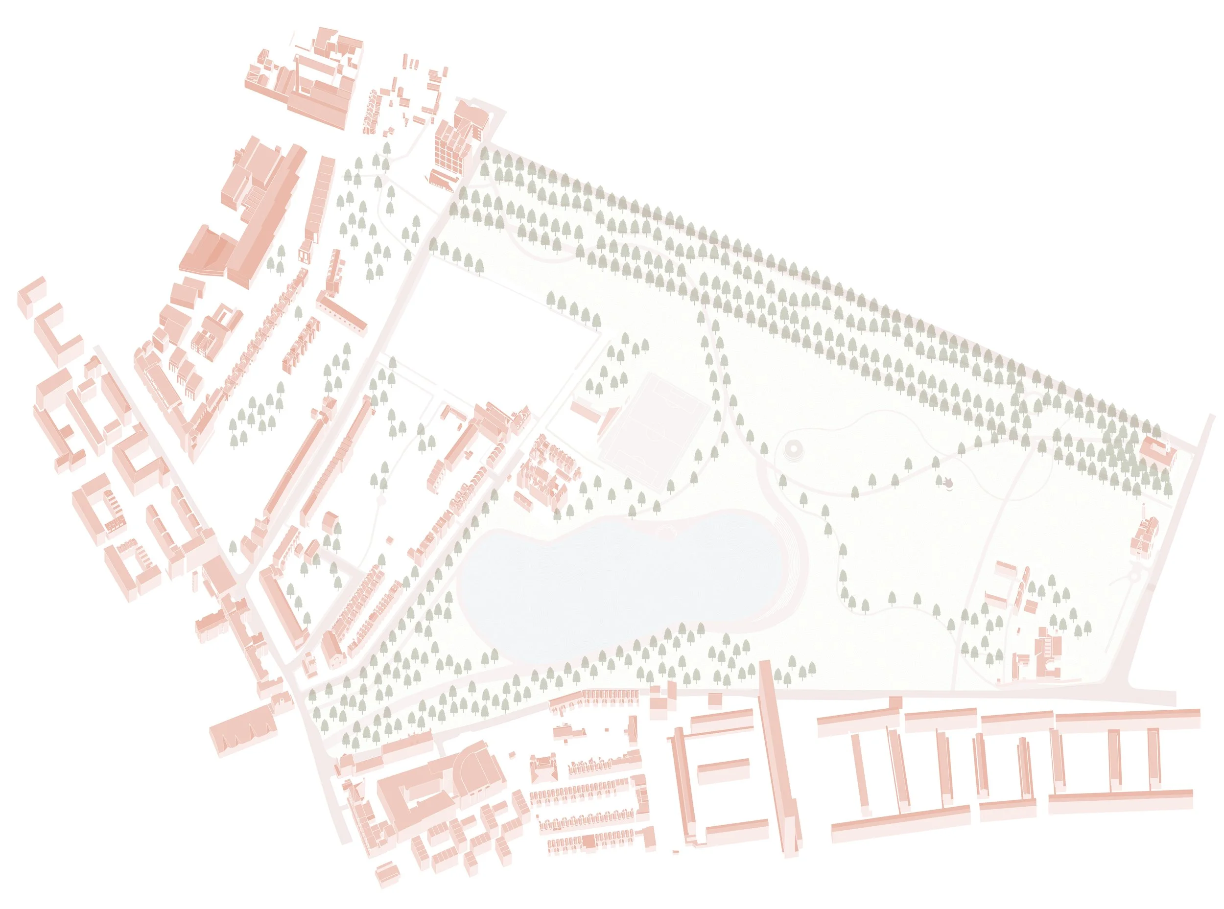 The immediate context of the park is rapidly changing with the Old Kent Road regeneration to the east and the vibrant Latin and African communities that surround other corners of the park. Burgess Park is intensely used by locals who hold festivals, carnivals, sports events and many other social gatherings here. Both the park and the city here feel young, provisional and full of promise.